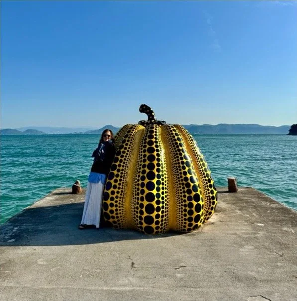 We had never experienced art, nature and architecture like this. Works by James Turrell and Walter de Maria and of course Kusama were awe inspiring. We were able to hug her iconic Yellow Pumpkin which was created as a permanent exhibit on its pier overlooking the sea and mountains in 1994 and called ‘out of bounds’.